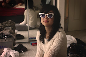 Diggin my new SnazzyFRESH shades- they remind me of a sleek vintage car. And my new navy blue cardigan with bad-ass leather pocket that easily turns this normally granny-shaped sweater into something cool. I think I shall keep this find. P.S. Never will attempt driving downtown SF again.